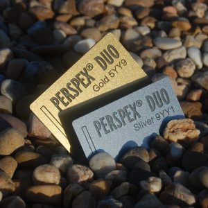 Tο PERSPEX® Duo είναι ακρυλικό συμπαγές μαύρο με επίστρωση χρυσό, που επιτρέπει στο μαύρο να φαίνεται καθαρά όταν είναι χαραγμένο. Δύο όμορφα εφέ σε ένα μόνο προϊόν!   Διαθέσιμα σε 3χιλ, 127εκ x 203εκ.