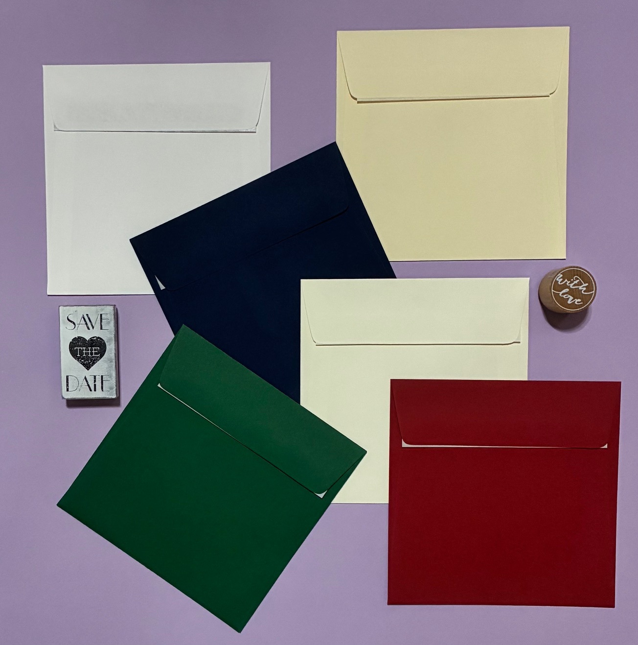 Φάκελοι ιδανικοί για προσκλήσεις από χαρτί 120gr ανάγλυφο σε τύπο ακουαρέλλα του Ιταλικού εργοστασίου Favini, διατίθενται σε καρέ αυτοκόλλητο ή/και V κλείσιμο.